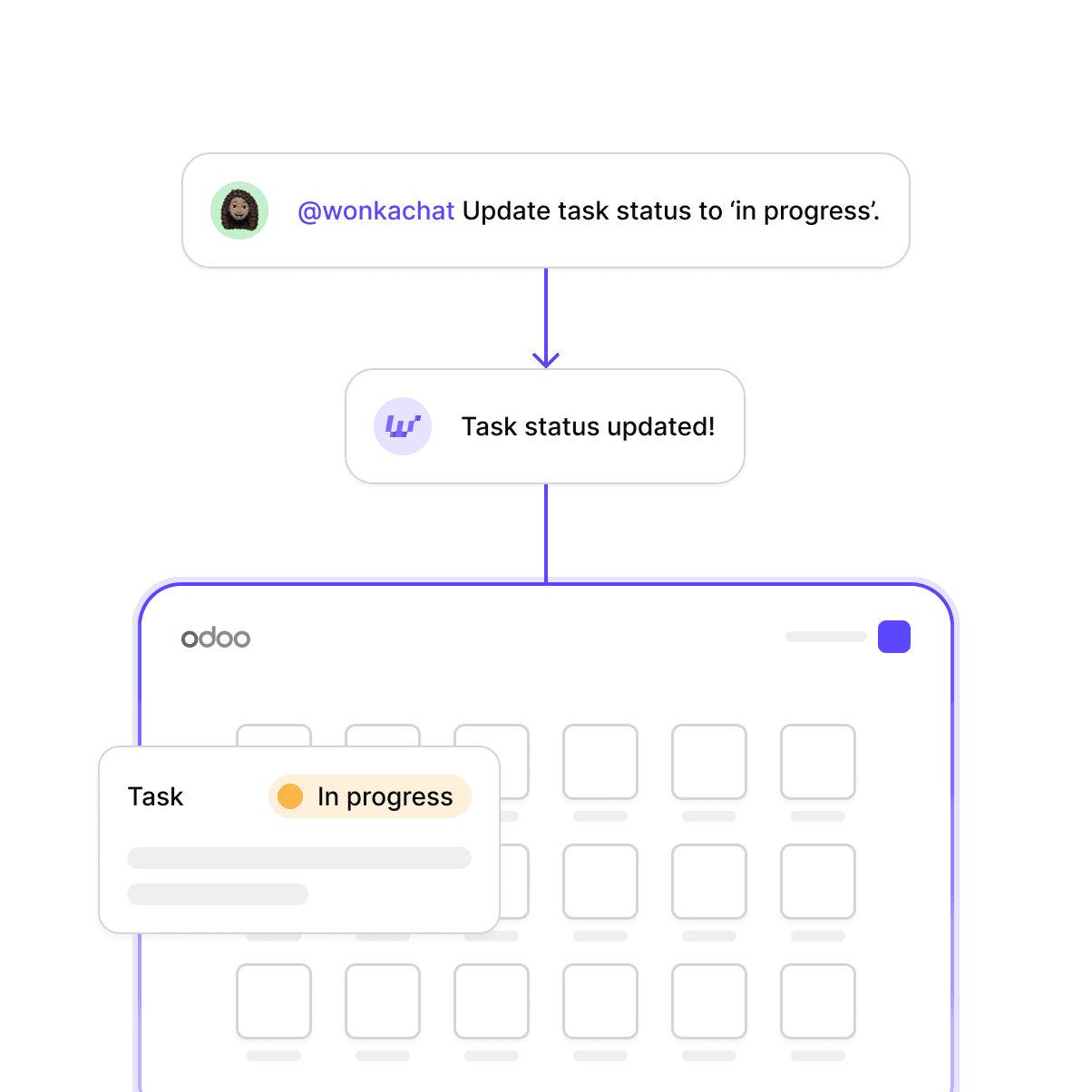 Ask in natural language. WonkaChat executes tasks across all your Odoo modules, and your other tools.