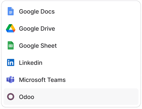 5-minute setup. Connect your Odoo instance and your working stack (more than 12 tools connection available and more incoming) securely with one click.
